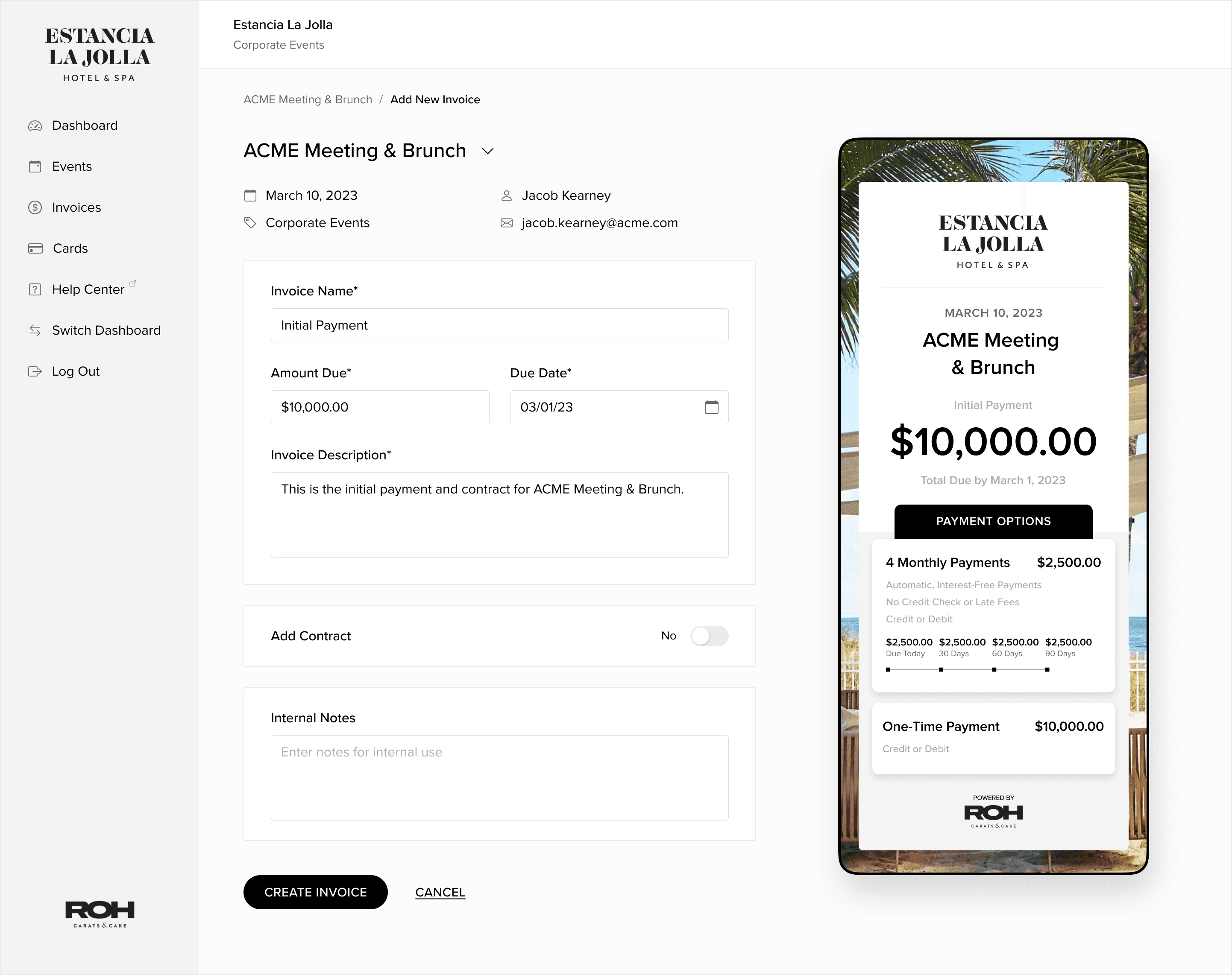 When ROH discovered that hospitality and property groups were using outdated software to handle operations, cash flow, and margins, they identified a problem that no one else was willing to tackle. They set out to design the first revenue optimization platform for hospitality brands, which would enable them to manage payments, improve conversions, increase revenue, and enhance communication and collaboration across departments.